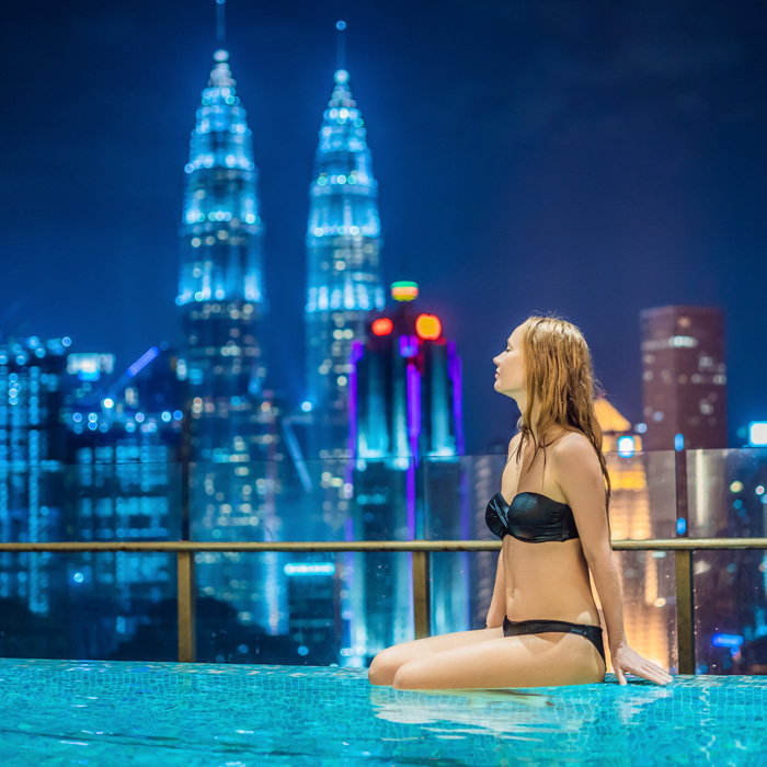 豪華ホテルのプールサイドなら、都会にいながら海外リゾート気分♪